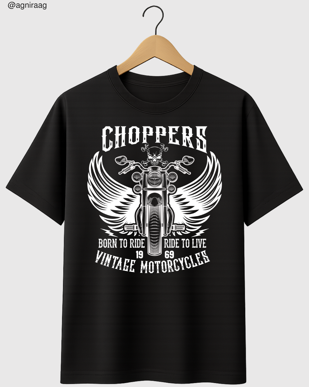 This Skull Rider design captures the raw soul of the open road β featuring a vintage chopper bike, a skull-headed rider, and bold eagle wings spreading freedom on both sides.